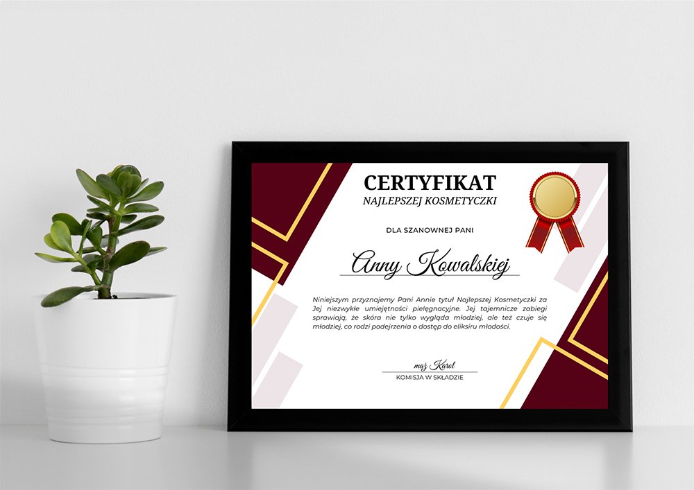 Certyfikat dla Kosmetyczki – Najlepsza Kosmetyczka