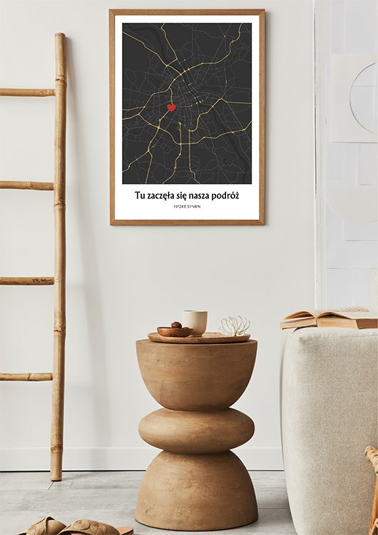 Elegancka Mapa Personalizowana to personalizowana mapa – tworzona z myślą o konkretnej osobie i chwili. Dodaj dedykację, imiona, datę, współrzędne lub ważne miejsce, a otrzymasz unikatowy prezent, który stanie się cudowną pamiątką na lata. Połączenie estetyki i trwałych materiałów sprawia, że mapa pięknie zaprezentuje się w każdym wnętrzu i będzie długo cieszyć oko.