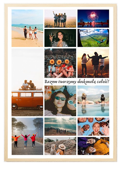 Kolaż 15 zdjęć to personalizowany kolaż zdjęć – tworzony z myślą o ważnych chwilach i bliskich osobach. Możesz wybrać zdjęcia, dodać dedykację lub datę, aby stworzyć jedyną w swoim rodzaju kompozycję. To nie tylko dekoracja, ale też piękna historia zamknięta w kadrach. Połączenie estetyki, intensywnych kolorów i wysokiej jakości druku sprawia, że kolaż stanie się wyjątkową ozdobą wnętrza i pamiątką na długie lata.