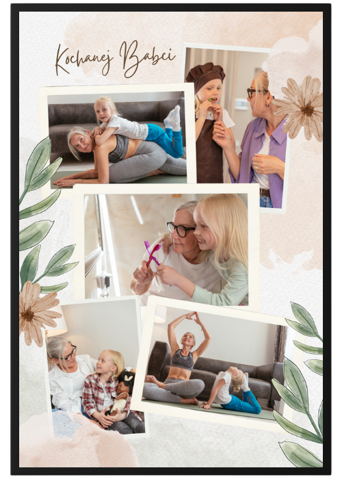 Kolaż dla Kochanej Babci to personalizowany kolaż zdjęć – tworzony z myślą o ważnych chwilach i bliskich osobach. Możesz wybrać zdjęcia, dodać dedykację lub datę, aby stworzyć jedyną w swoim rodzaju kompozycję. To nie tylko dekoracja, ale też piękna historia zamknięta w kadrach. Połączenie estetyki, intensywnych kolorów i wysokiej jakości druku sprawia, że kolaż stanie się wyjątkową ozdobą wnętrza i pamiątką na długie lata.
