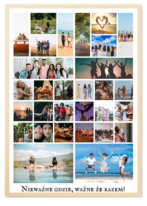 Kolaż na dużo zdjęć to personalizowany kolaż zdjęć – tworzony z myślą o ważnych chwilach i bliskich osobach. Możesz wybrać zdjęcia, dodać dedykację lub datę, aby stworzyć jedyną w swoim rodzaju kompozycję. To nie tylko dekoracja, ale też piękna historia zamknięta w kadrach. Połączenie estetyki, intensywnych kolorów i wysokiej jakości druku sprawia, że kolaż stanie się wyjątkową ozdobą wnętrza i pamiątką na długie lata.