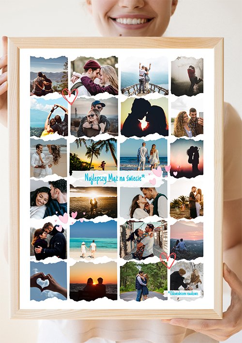 Kolaż zdjęć dla Męża – Najlepszy Mąż na świecie to dekoracja i prezent, który mówi więcej niż tysiąc słów. Nasze kolaże zdjęć to nie tylko zacne dekoracje, ale też opowieści zapisane w kadrach.