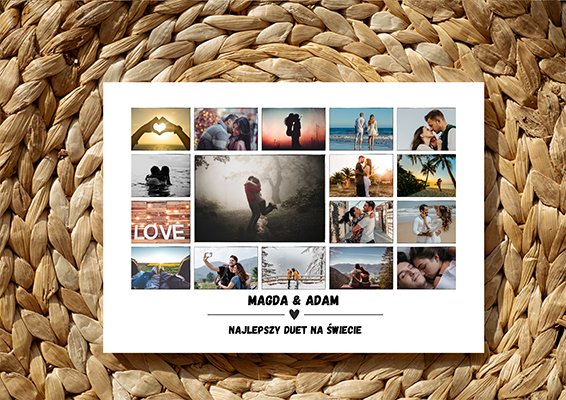 Kolaż zdjęć dla zakochanych – Najlepszy duet na świecie to personalizowany kolaż zdjęć – tworzony z myślą o ważnych chwilach i bliskich osobach. Możesz wybrać zdjęcia, dodać dedykację lub datę, aby stworzyć jedyną w swoim rodzaju kompozycję. To nie tylko dekoracja, ale też piękna historia zamknięta w kadrach. Połączenie estetyki, intensywnych kolorów i wysokiej jakości druku sprawia, że kolaż stanie się wyjątkową ozdobą wnętrza i pamiątką na długie lata.