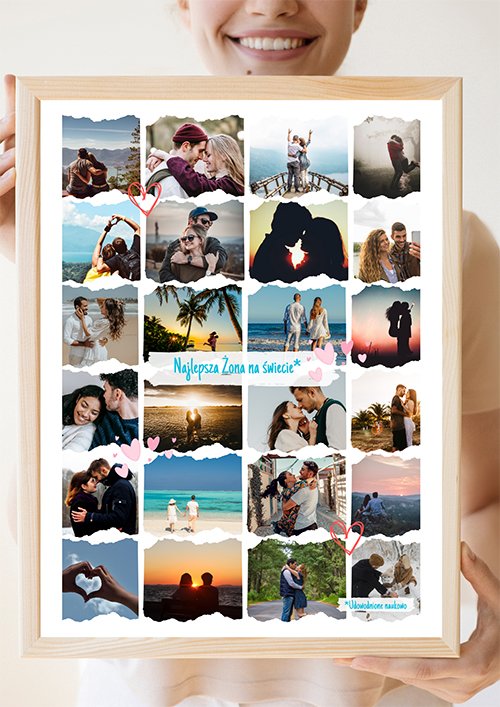 Kolaż zdjęć dla Żony – Najlepsza Żona na świecie to dekoracja i prezent, który mówi więcej niż tysiąc słów. Nasze kolaże zdjęć to nie tylko zacne dekoracje, ale też opowieści zapisane w kadrach.