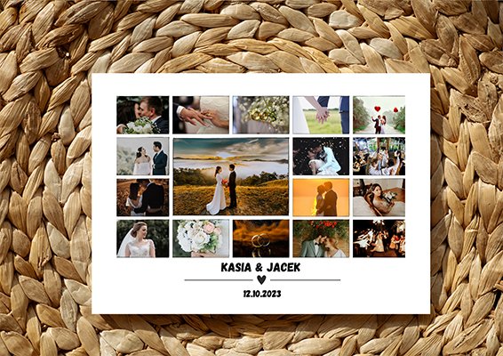 Kolaż zdjęć ślubnych – Imiona + Data Ślubu
