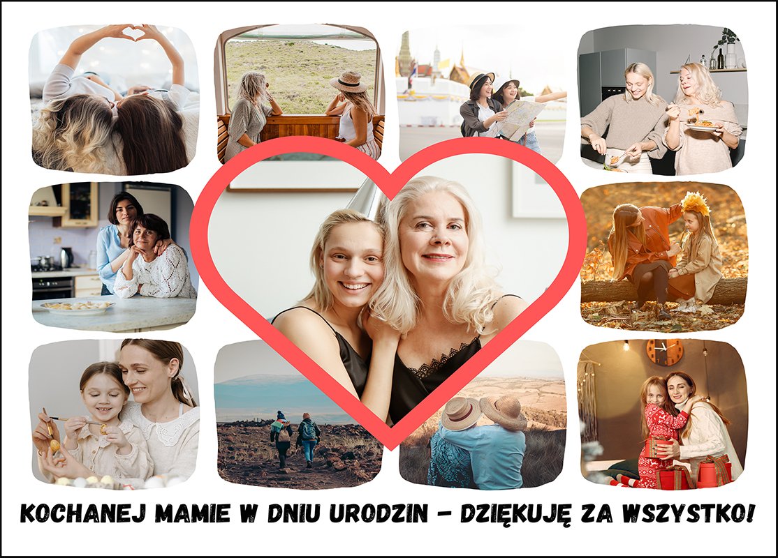 Kolaż ze zdjęciami na urodziny – Dla Mamy – Dziękuję za wszystko! to dekoracja i prezent, który mówi więcej niż tysiąc słów. Nasze kolaże zdjęć to nie tylko zacne dekoracje, ale też opowieści zapisane w kadrach.