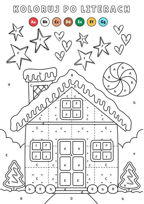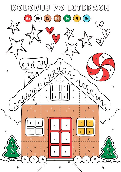 Kolorowanka podłogowa XXL – koloruj po literach – Świąteczny domek