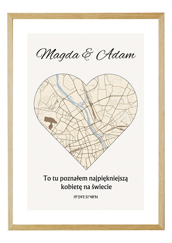 Mapa dla Wybranki Serca to personalizowana mapa – wyjątkowy upominek i cudowna pamiątka, która będzie przypominać o ważnych chwilach przez lata. Mapy spersonalizowane to oryginalny prezent na rocznicę, walentynki, ślub, urodziny, narodziny dziecka czy inne okazje.