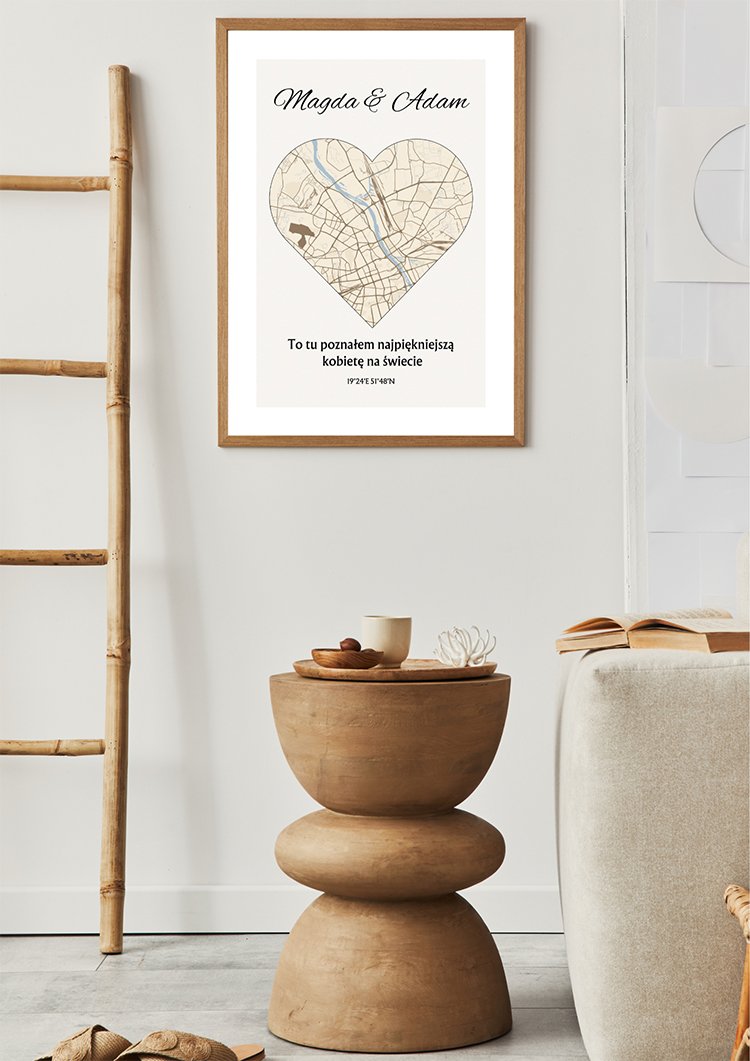 Mapa dla Wybranki Serca to personalizowana mapa – tworzona z myślą o konkretnej osobie i chwili. Dodaj dedykację, imiona, datę, współrzędne lub ważne miejsce, a otrzymasz unikatowy prezent, który stanie się cudowną pamiątką na lata. Połączenie estetyki i trwałych materiałów sprawia, że mapa pięknie zaprezentuje się w każdym wnętrzu i będzie długo cieszyć oko.