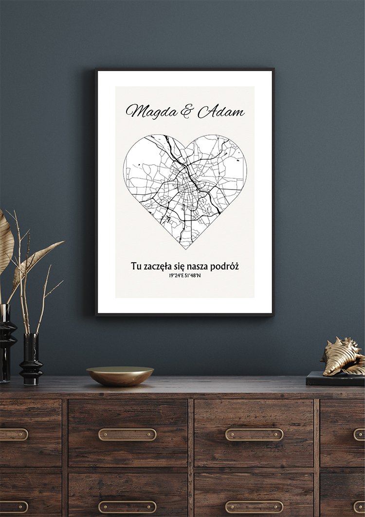 Mapa na Walentynki – Serce to personalizowana mapa – wyjątkowy upominek i cudowna pamiątka, która będzie przypominać o ważnych chwilach przez lata. Mapy spersonalizowane to oryginalny prezent na rocznicę, walentynki, ślub, urodziny, narodziny dziecka czy inne okazje.