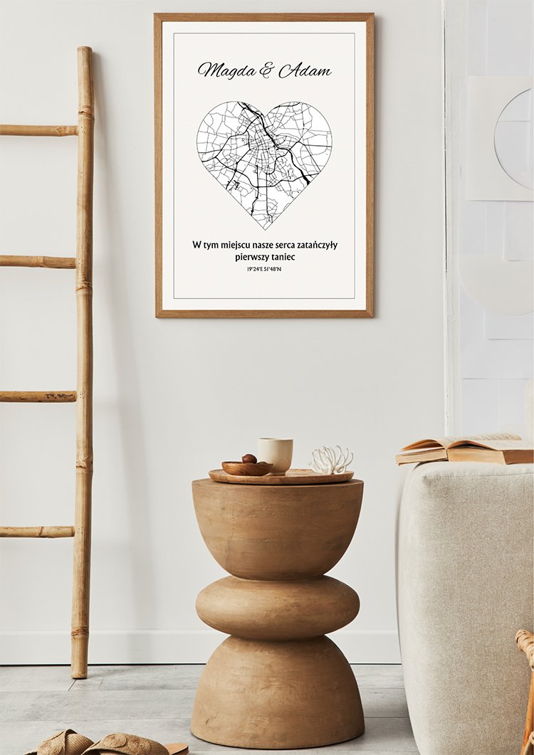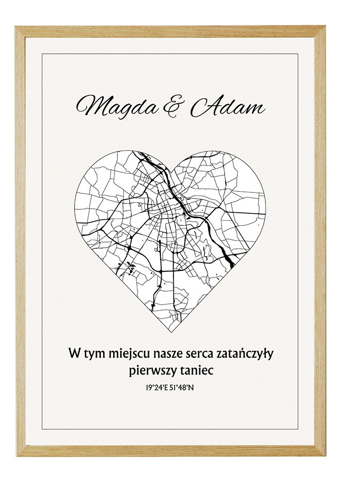 Mapa Naszego Ślubu – w Kształcie Serca to personalizowana mapa – tworzona z myślą o konkretnej osobie i chwili. Dodaj dedykację, imiona, datę, współrzędne lub ważne miejsce, a otrzymasz unikatowy prezent, który stanie się cudowną pamiątką na lata. Połączenie estetyki i trwałych materiałów sprawia, że mapa pięknie zaprezentuje się w każdym wnętrzu i będzie długo cieszyć oko.
