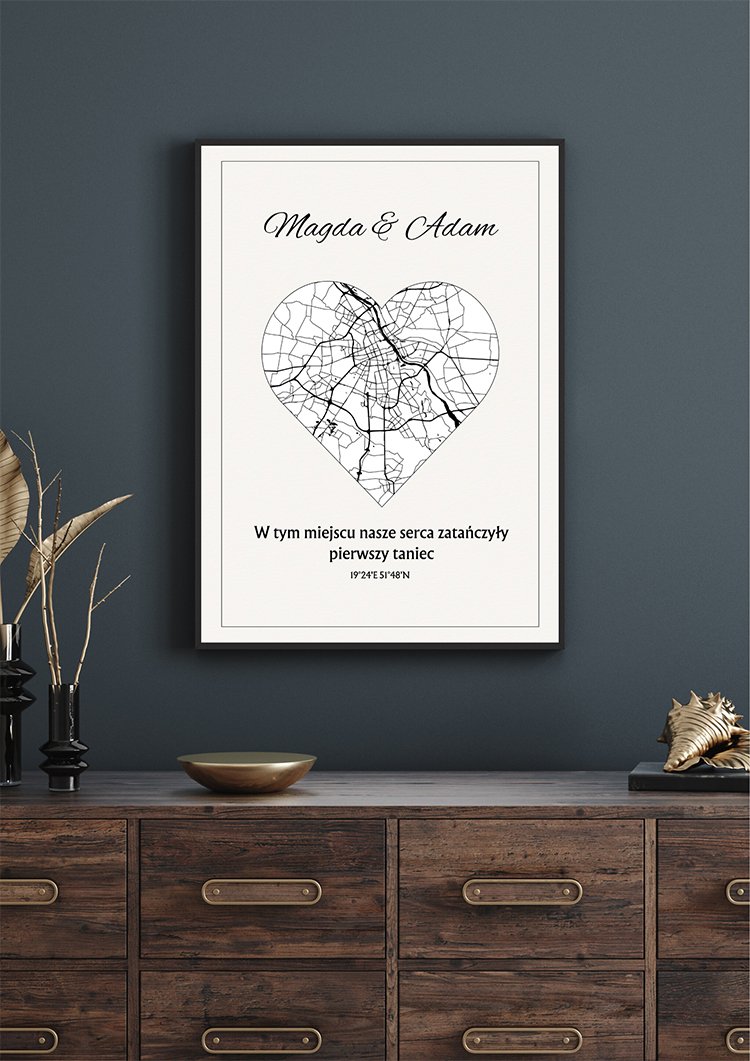 Mapa Naszego Ślubu – w Kształcie Serca to personalizowana mapa – wyjątkowy upominek i cudowna pamiątka, która będzie przypominać o ważnych chwilach przez lata. Mapy spersonalizowane to oryginalny prezent na rocznicę, walentynki, ślub, urodziny, narodziny dziecka czy inne okazje.