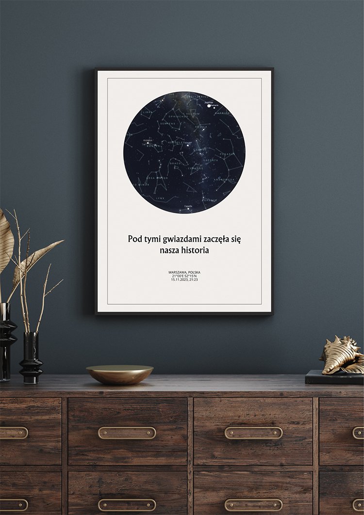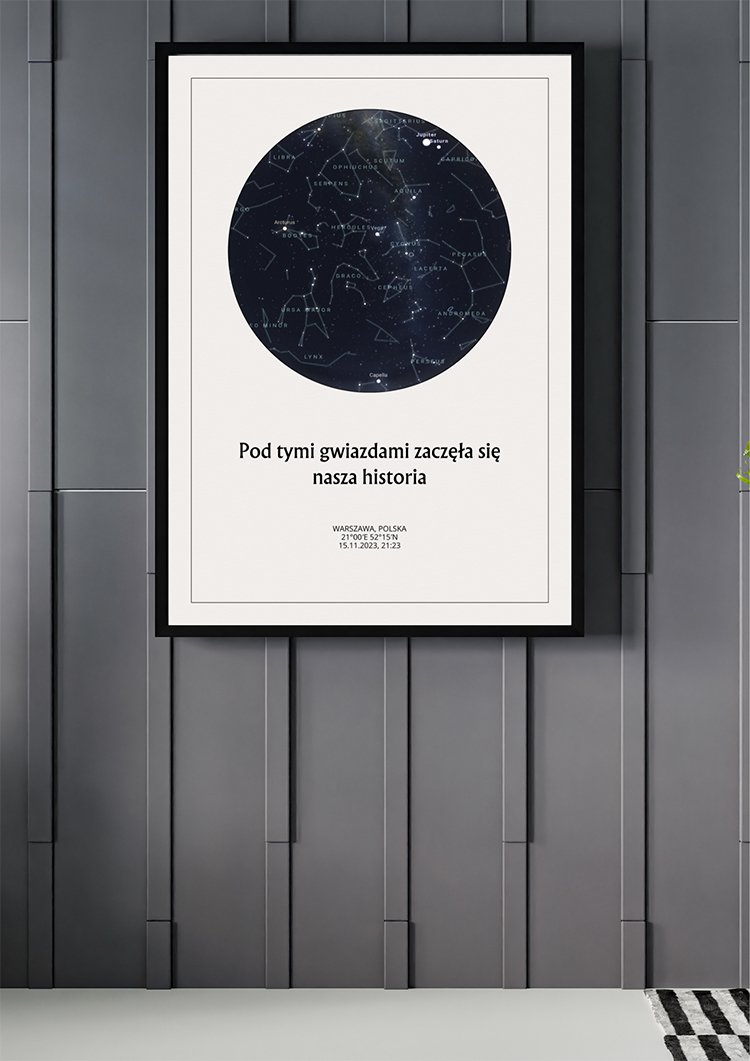 Mapa Nieba Gwiazd Personalizowana to personalizowana mapa – tworzona z myślą o konkretnej osobie i chwili. Dodaj dedykację, imiona, datę, współrzędne lub ważne miejsce, a otrzymasz unikatowy prezent, który stanie się cudowną pamiątką na lata. Połączenie estetyki i trwałych materiałów sprawia, że mapa pięknie zaprezentuje się w każdym wnętrzu i będzie długo cieszyć oko.