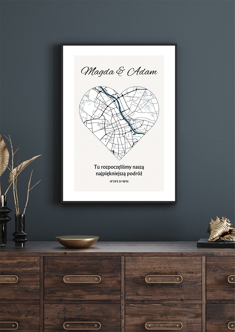 Mapa Personalizowana na Walentynki / Rocznicę to personalizowana mapa – wyjątkowy upominek i cudowna pamiątka, która będzie przypominać o ważnych chwilach przez lata. Mapy spersonalizowane to oryginalny prezent na rocznicę, walentynki, ślub, urodziny, narodziny dziecka czy inne okazje.