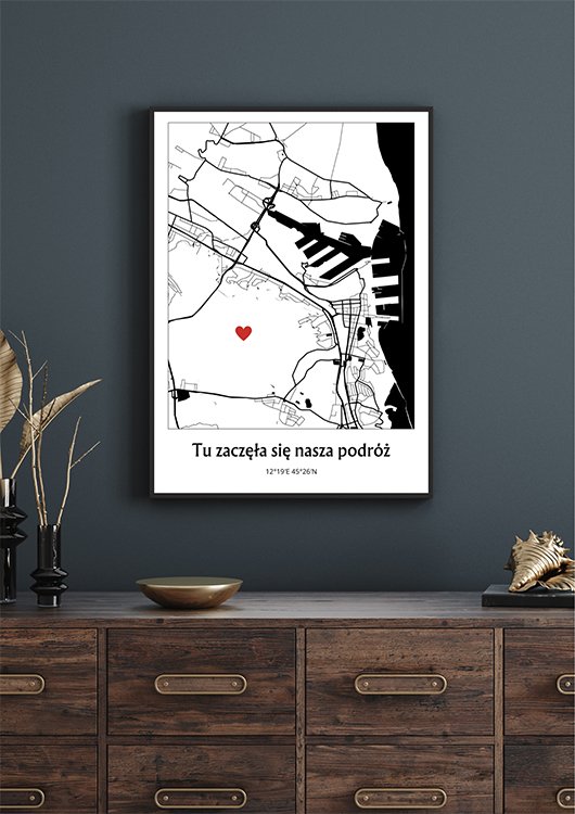 Mapa Romantyczna z Waszym Miejscem to personalizowana mapa – wyjątkowy upominek i cudowna pamiątka, która będzie przypominać o ważnych chwilach przez lata. Mapy spersonalizowane to oryginalny prezent na rocznicę, walentynki, ślub, urodziny, narodziny dziecka czy inne okazje.