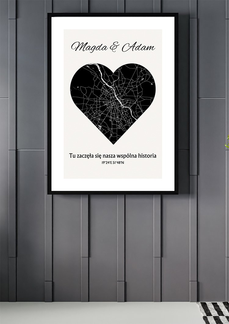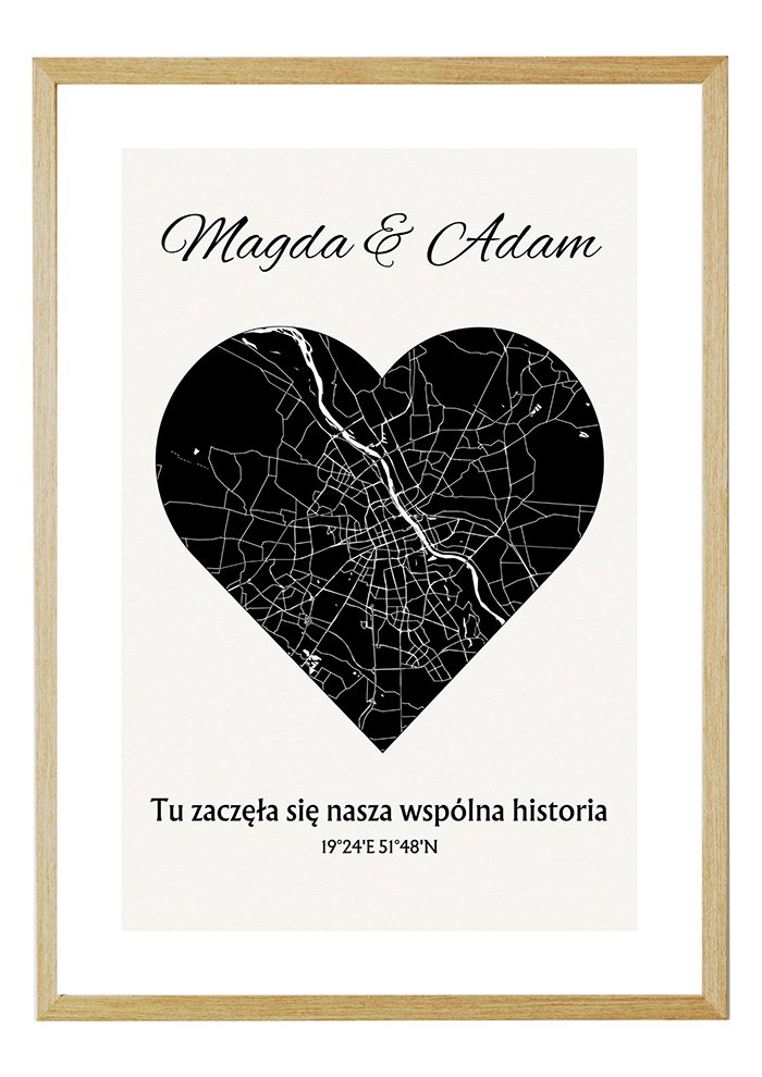 Personalizowana Mapa w Kształcie Serca to personalizowana mapa – wyjątkowy upominek i cudowna pamiątka, która będzie przypominać o ważnych chwilach przez lata. Mapy spersonalizowane to oryginalny prezent na rocznicę, walentynki, ślub, urodziny, narodziny dziecka czy inne okazje.