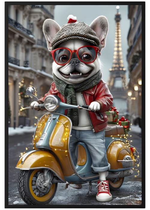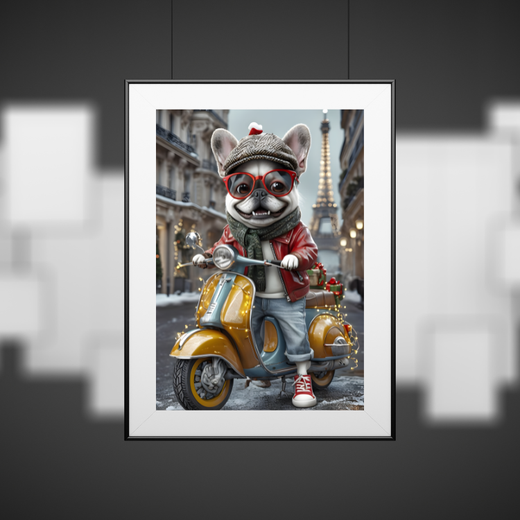 Plakat Bulldog Francuski to ciekawa dekoracja ścienna, która świetnie sprawdzi się jako ozdoba do Twojego domu lub jako oryginalny prezent. Łatwy do oprawienia, dostępny w popularnych rozmiarach.