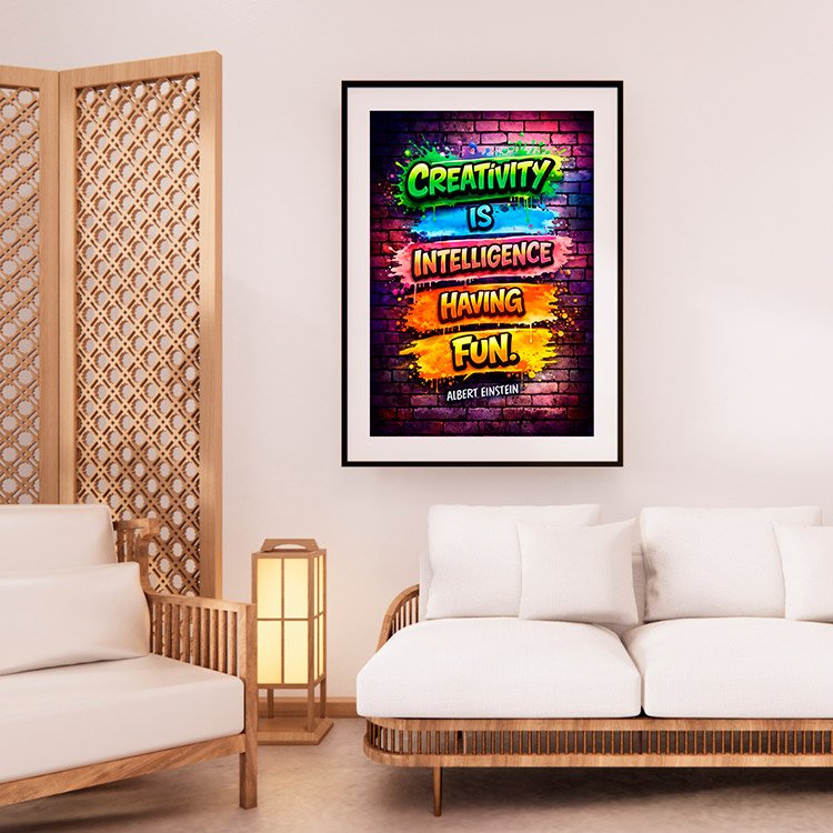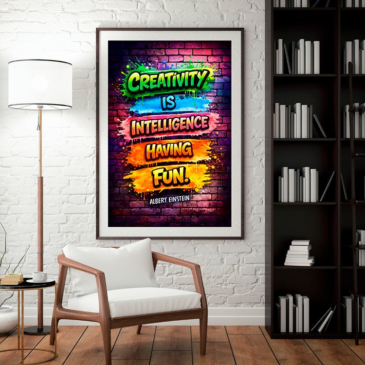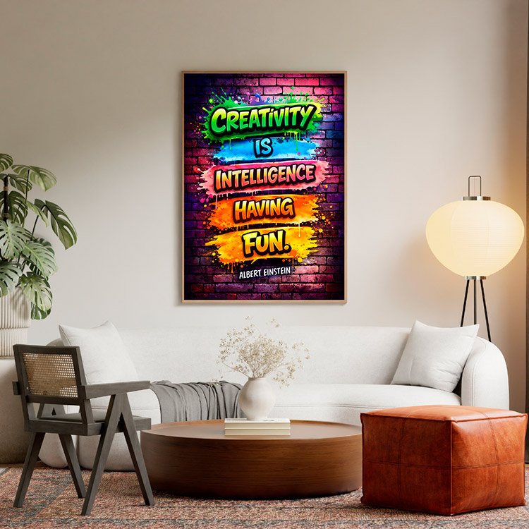 Plakat Creativity to ciekawa dekoracja ścienna, która świetnie sprawdzi się jako ozdoba do Twojego domu lub jako oryginalny prezent. Łatwy do oprawienia, dostępny w popularnych rozmiarach.