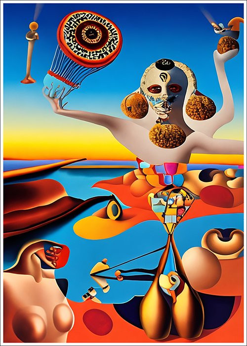 Plakat Cudaczny świat w stylu Salvadora Dali to ciekawa dekoracja ścienna, która świetnie sprawdzi się jako ozdoba do Twojego domu lub jako oryginalny prezent. Łatwy do oprawienia, dostępny w popularnych rozmiarach.