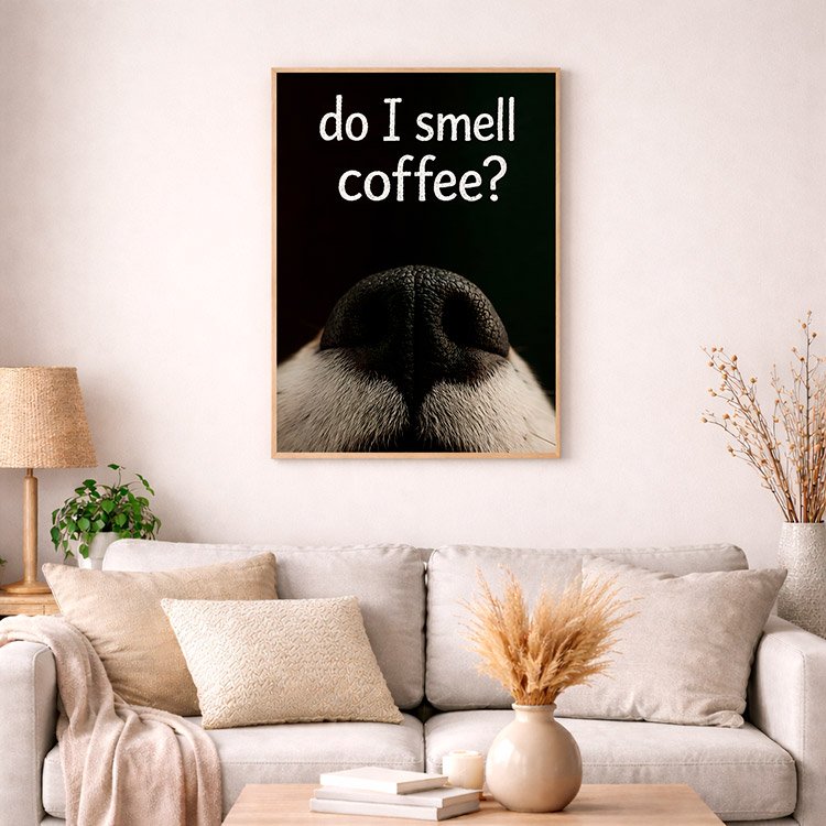 Plakat Do I Smell Coffee to ciekawa dekoracja ścienna, która świetnie sprawdzi się jako ozdoba do Twojego domu lub jako oryginalny prezent. Łatwy do oprawienia, dostępny w popularnych rozmiarach.