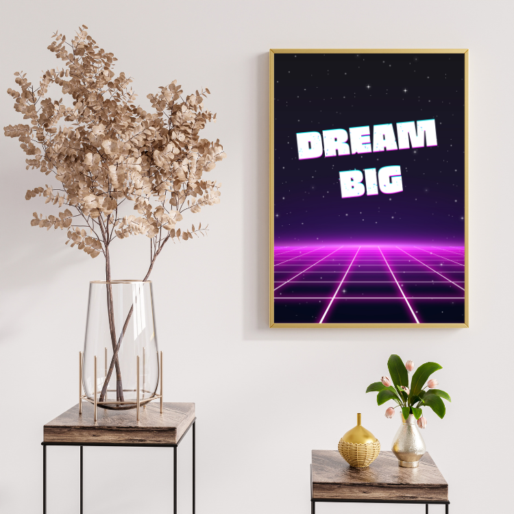 Plakat Dream Big to połączenie estetyki, trwałości i stylu. Motyw oraz staranność wykonania sprawiają, że będzie cieszyć oko przez wiele lat i stanie się wyjątkową dekoracją w Twoim wnętrzu.