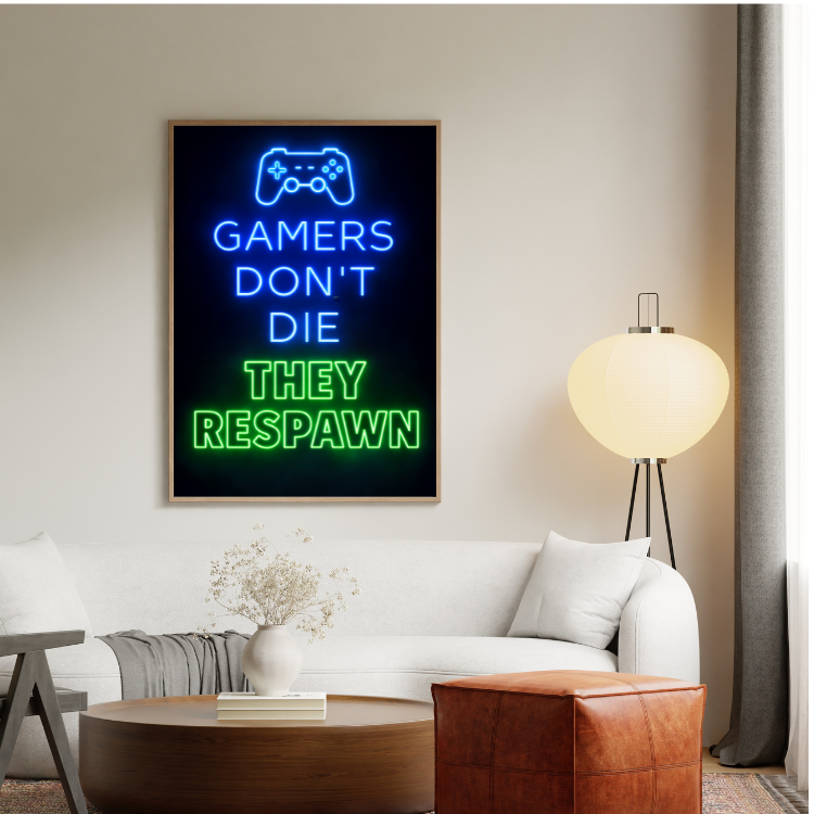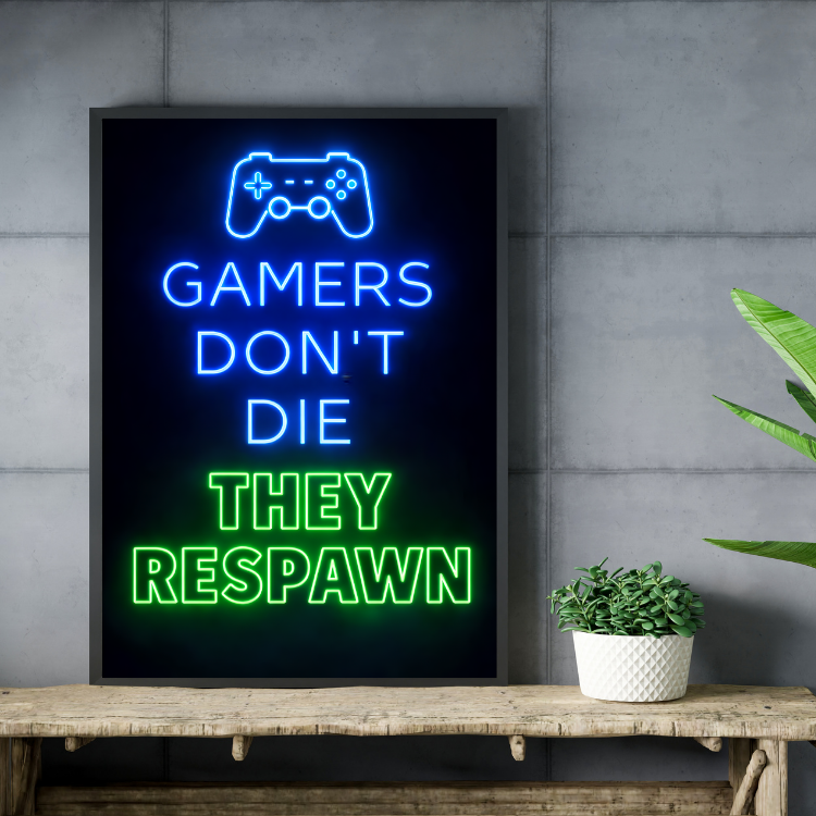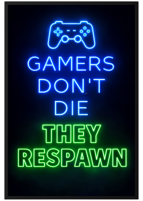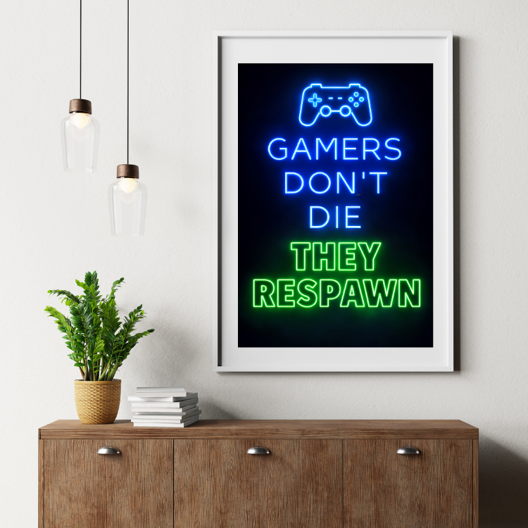Plakat Gamers Don’T Die to ciekawa dekoracja ścienna, która świetnie sprawdzi się jako ozdoba do Twojego domu lub jako oryginalny prezent. Łatwy do oprawienia, dostępny w popularnych rozmiarach.