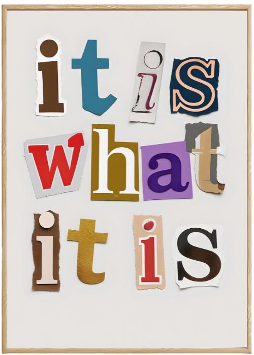 Plakat It Is What It Is – Z napisami, Slogany, hasła, symbole, Papier plakatowy, Wykończenie matowe, Bez ramy