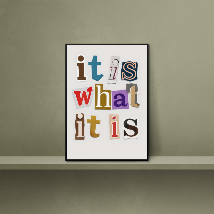 Plakat It Is What It Is to ciekawa dekoracja ścienna, która świetnie sprawdzi się jako ozdoba do Twojego domu lub jako oryginalny prezent. Łatwy do oprawienia, dostępny w popularnych rozmiarach.