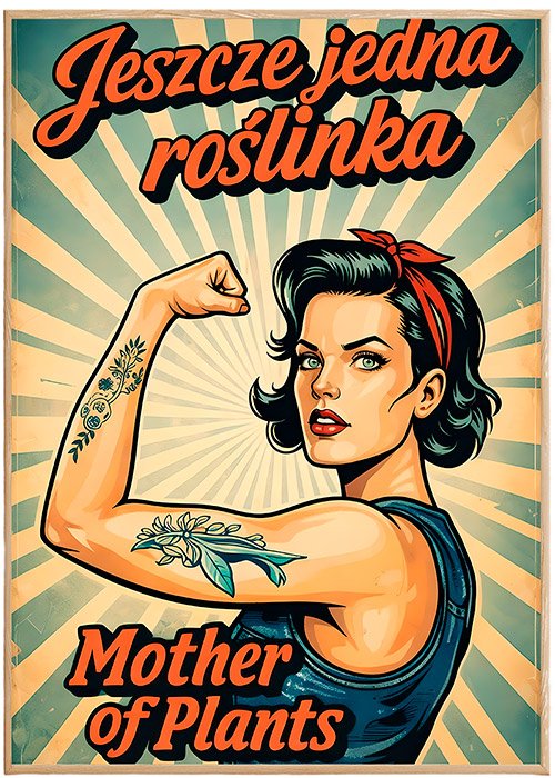 Plakat Jeszcze Jedna Roślinka to ciekawa dekoracja ścienna, która świetnie sprawdzi się jako ozdoba do Twojego domu lub jako oryginalny prezent. Łatwy do oprawienia, dostępny w popularnych rozmiarach.