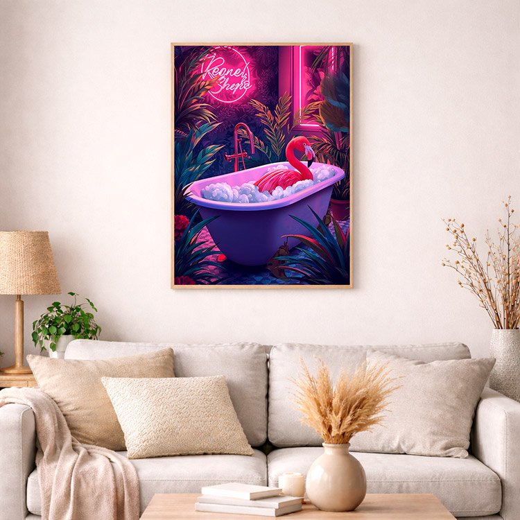 Plakat Kąpiel Flaminga to ciekawa dekoracja ścienna, która świetnie sprawdzi się jako ozdoba do Twojego domu lub jako oryginalny prezent. Łatwy do oprawienia, dostępny w popularnych rozmiarach.