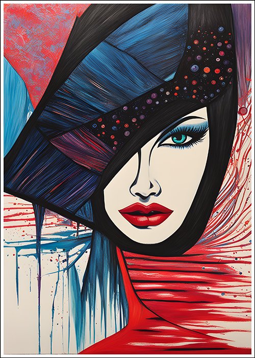 Plakat Kobieta w czerwieni – Sztuka, Nowoczesny, Papier plakatowy, Wykończenie matowe, Bez ramy