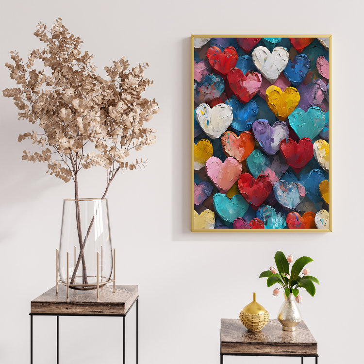 Plakat Kolorowe Serca to połączenie estetyki, trwałości i stylu. Motyw oraz staranność wykonania sprawiają, że będzie cieszyć oko przez wiele lat i stanie się wyjątkową dekoracją w Twoim wnętrzu.