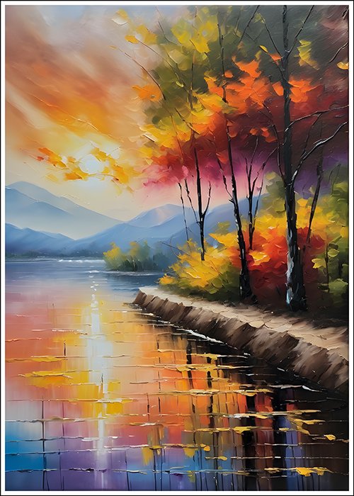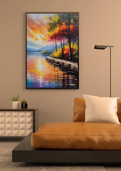 Plakat Kolorowy pejzaż w stylu obrazu to połączenie estetyki, trwałości i stylu. Motyw oraz staranność wykonania sprawiają, że będzie cieszyć oko przez wiele lat i stanie się wyjątkową dekoracją w Twoim wnętrzu.