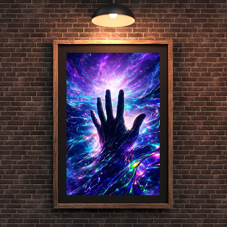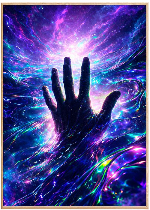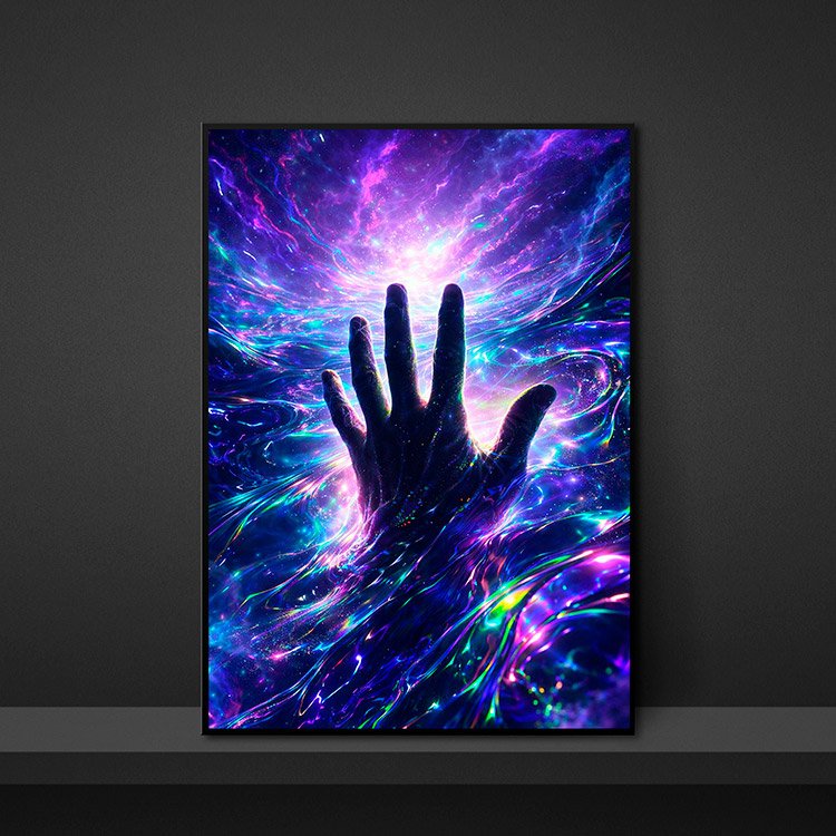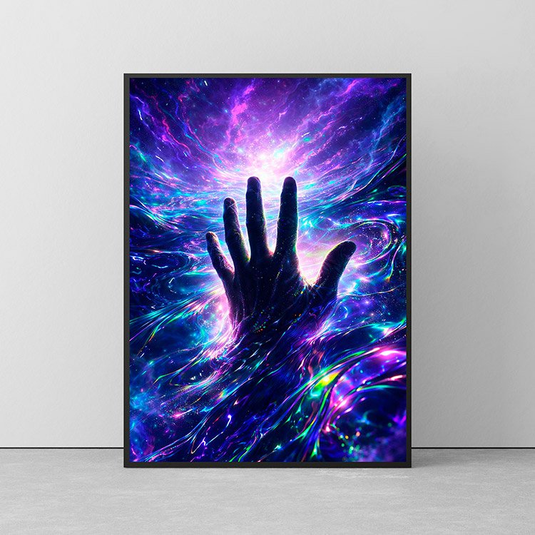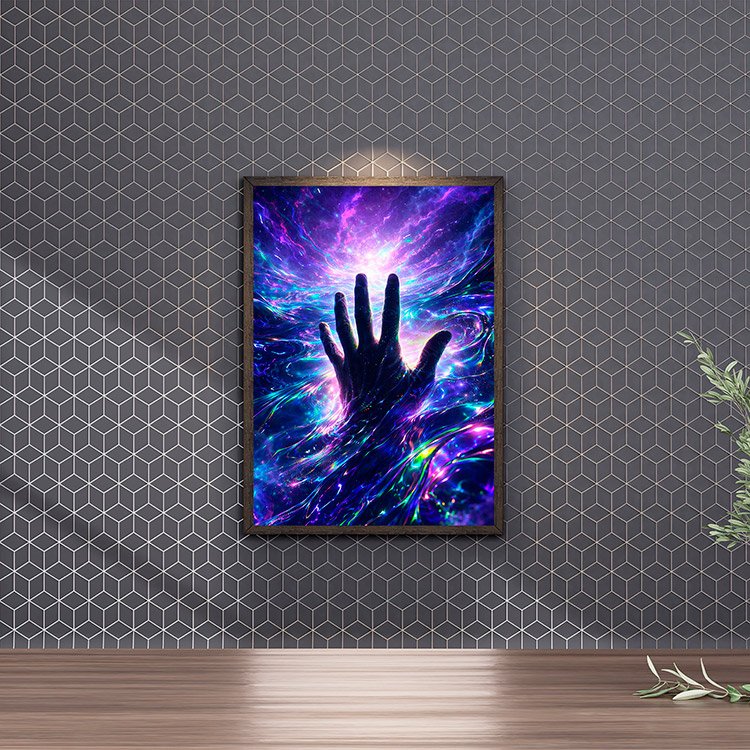 Plakat Kosmiczna Dlon to ciekawa dekoracja ścienna, która świetnie sprawdzi się jako ozdoba do Twojego domu lub jako oryginalny prezent. Łatwy do oprawienia, dostępny w popularnych rozmiarach.