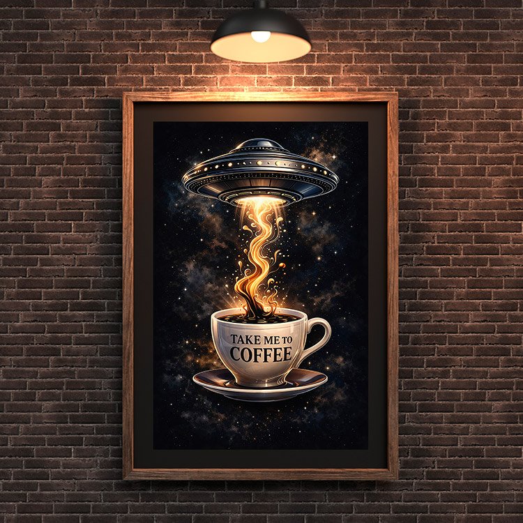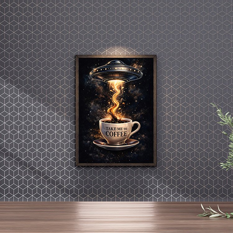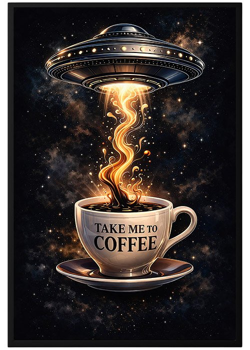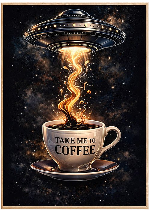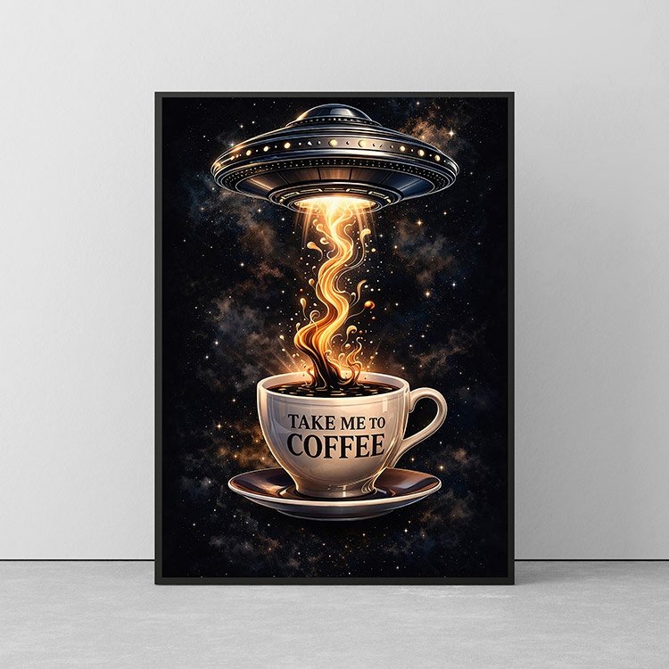 Plakat Kosmiczna Kawa to ciekawa dekoracja ścienna, która świetnie sprawdzi się jako ozdoba do Twojego domu lub jako oryginalny prezent. Łatwy do oprawienia, dostępny w popularnych rozmiarach.