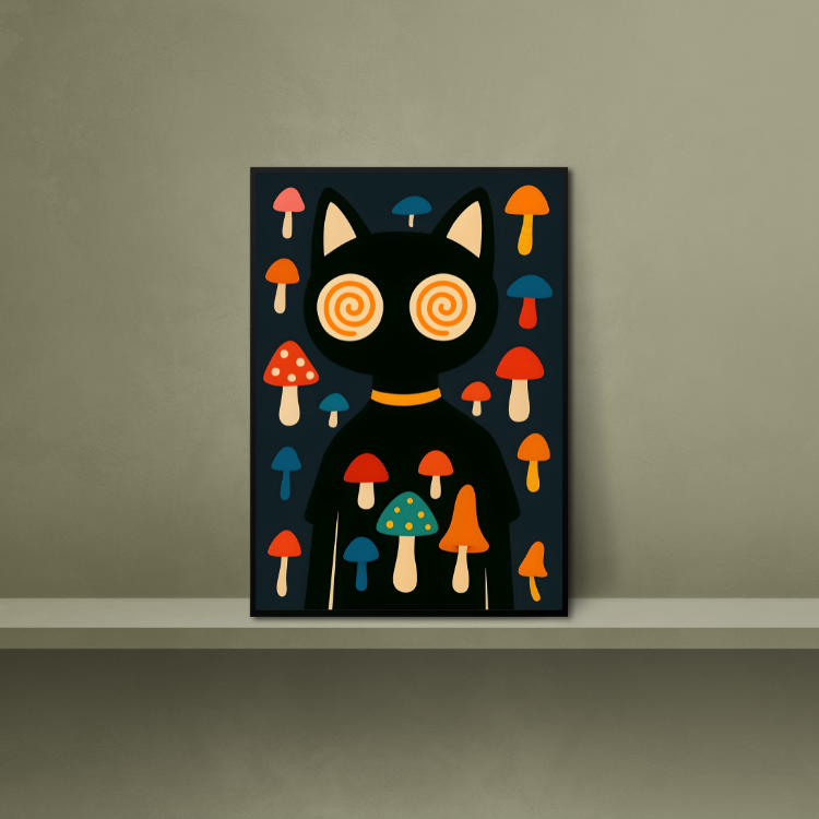 Plakat Kot Na Grzybach to połączenie estetyki, trwałości i stylu. Motyw oraz staranność wykonania sprawiają, że będzie cieszyć oko przez wiele lat i stanie się wyjątkową dekoracją w Twoim wnętrzu.
