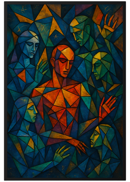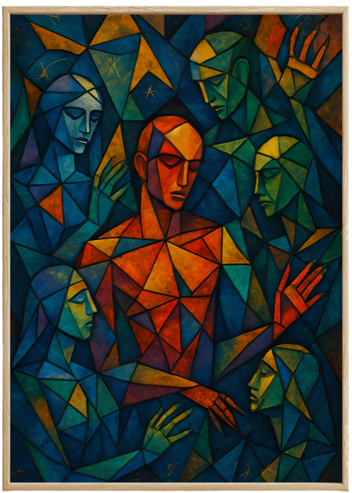 Plakat Kubistyczne Postacie to ciekawa dekoracja ścienna, która świetnie sprawdzi się jako ozdoba do Twojego domu lub jako oryginalny prezent. Łatwy do oprawienia, dostępny w popularnych rozmiarach.