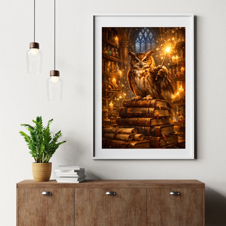 Plakat Magiczna Sowa to ciekawa dekoracja ścienna, która świetnie sprawdzi się jako ozdoba do Twojego domu lub jako oryginalny prezent. Łatwy do oprawienia, dostępny w popularnych rozmiarach.