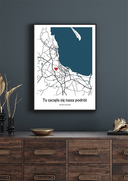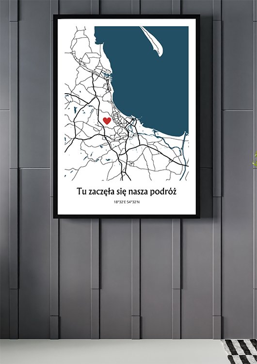 Plakat Mapa Miasta – Wasze Miejsce to personalizowana mapa – wyjątkowy upominek i cudowna pamiątka, która będzie przypominać o ważnych chwilach przez lata. Mapy spersonalizowane to oryginalny prezent na rocznicę, walentynki, ślub, urodziny, narodziny dziecka czy inne okazje.
