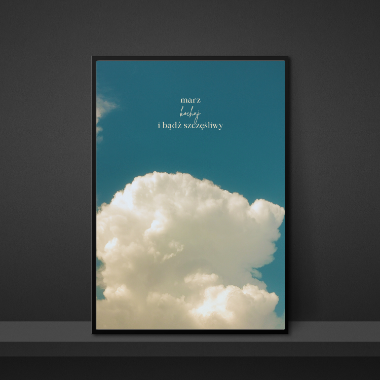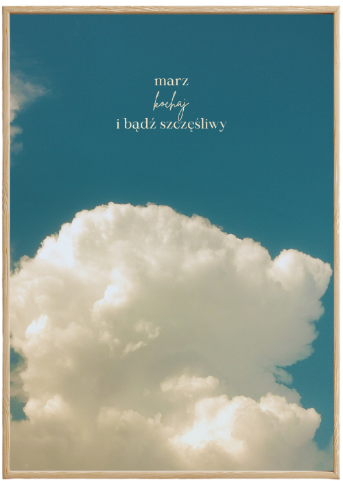 Plakat Marz Kochaj Bądź Szczęśliwy to ciekawa dekoracja ścienna, która świetnie sprawdzi się jako ozdoba do Twojego domu lub jako oryginalny prezent. Łatwy do oprawienia, dostępny w popularnych rozmiarach.