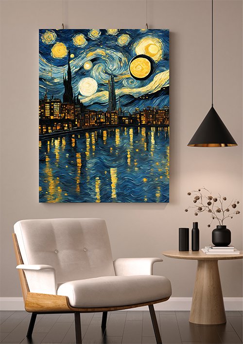 Plakat Miasto w stylu van Gogha to połączenie estetyki, trwałości i stylu. Motyw oraz staranność wykonania sprawiają, że będzie cieszyć oko przez wiele lat i stanie się wyjątkową dekoracją w Twoim wnętrzu.