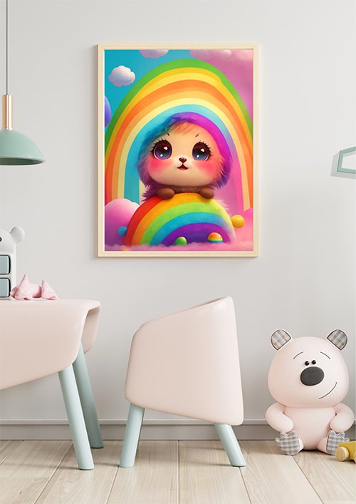 Plakat Misio i tęcza to połączenie estetyki, trwałości i stylu. Motyw oraz staranność wykonania sprawiają, że będzie cieszyć oko przez wiele lat i stanie się wyjątkową dekoracją w Twoim wnętrzu.