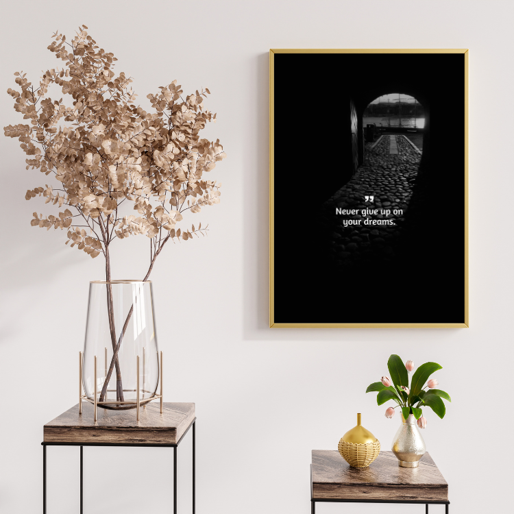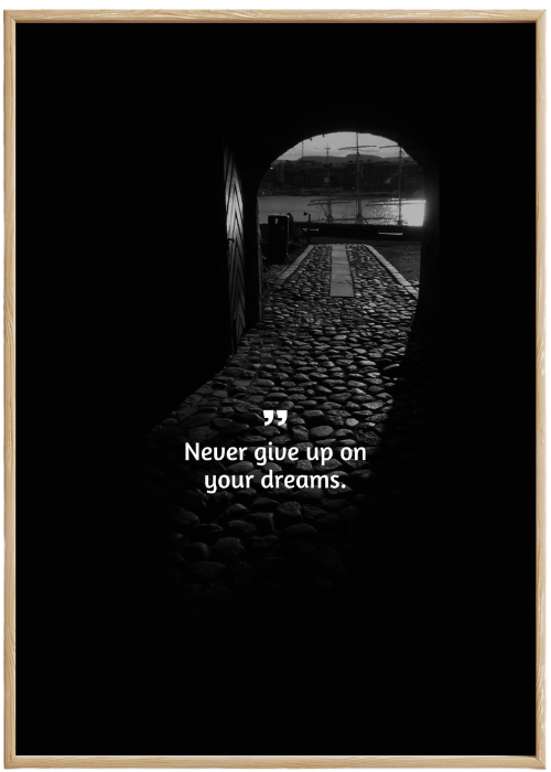 Plakat Never Give Up to połączenie estetyki, trwałości i stylu. Motyw oraz staranność wykonania sprawiają, że będzie cieszyć oko przez wiele lat i stanie się wyjątkową dekoracją w Twoim wnętrzu.