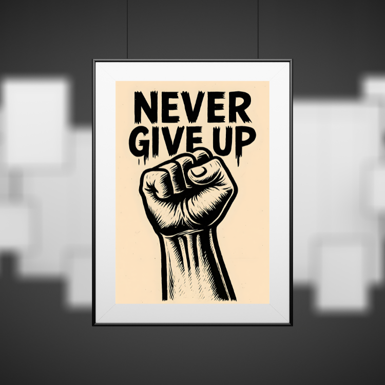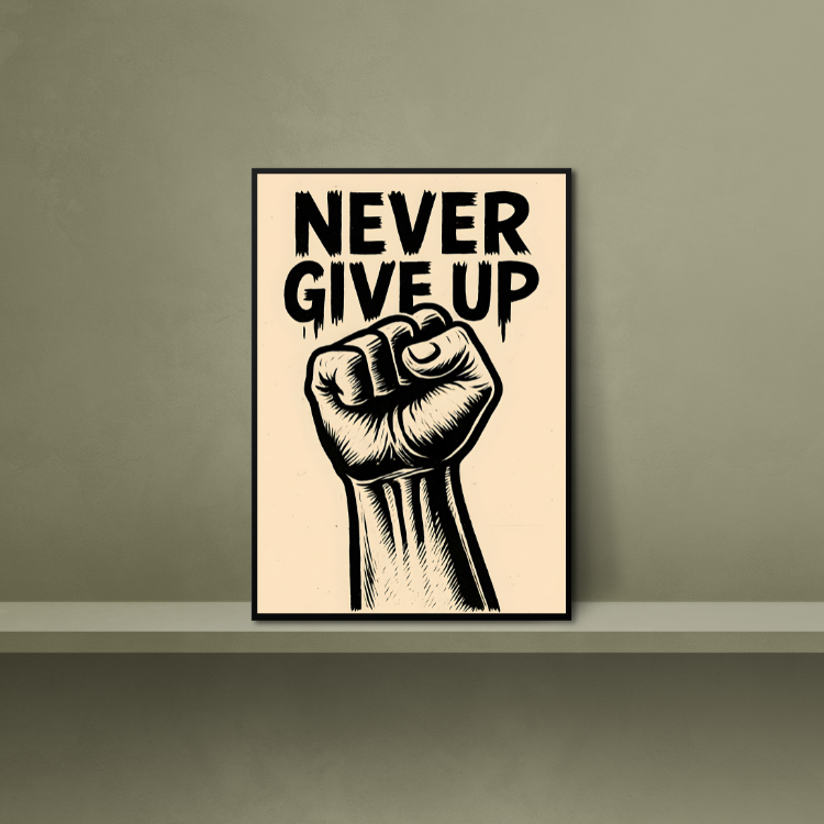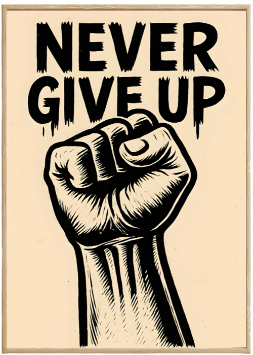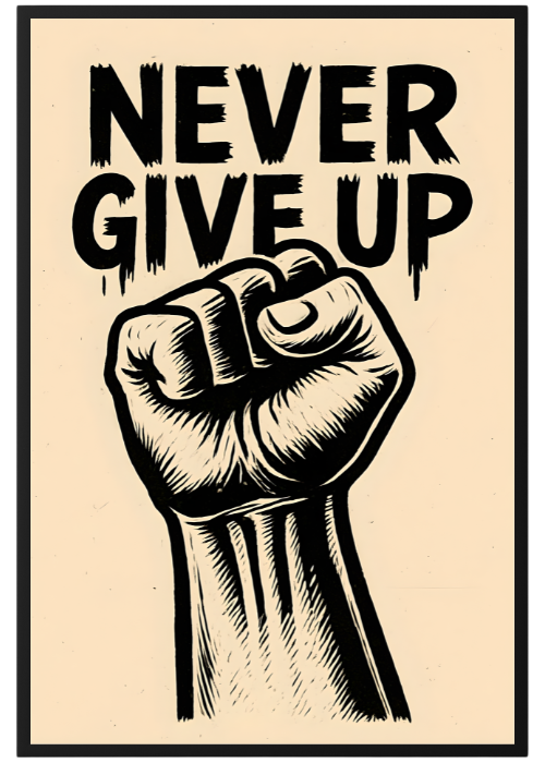 Plakat Nie Poddawaj Się to ciekawa dekoracja ścienna, która świetnie sprawdzi się jako ozdoba do Twojego domu lub jako oryginalny prezent. Łatwy do oprawienia, dostępny w popularnych rozmiarach.