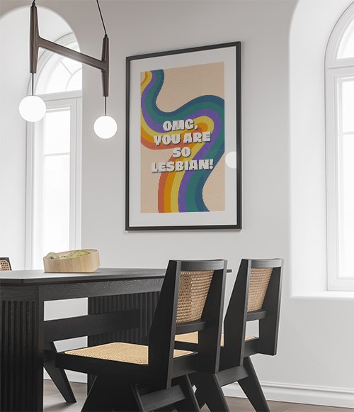 Plakat OMG you are so lesbian! to ciekawa dekoracja ścienna, która świetnie sprawdzi się jako ozdoba do Twojego domu lub jako oryginalny prezent. Łatwy do oprawienia, dostępny w popularnych rozmiarach.