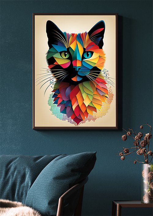 Plakat Pan barwny kot to połączenie estetyki, trwałości i stylu. Motyw oraz staranność wykonania sprawiają, że będzie cieszyć oko przez wiele lat i stanie się wyjątkową dekoracją w Twoim wnętrzu.