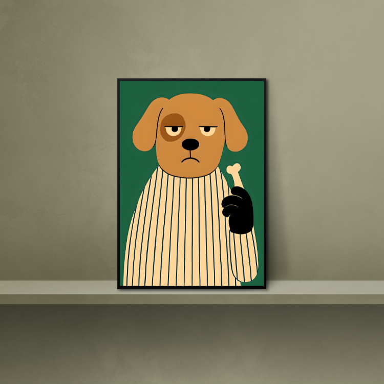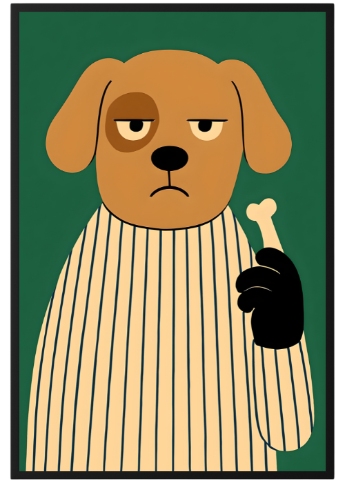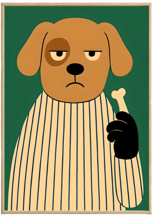 Plakat Pies Z Kością to ciekawa dekoracja ścienna, która świetnie sprawdzi się jako ozdoba do Twojego domu lub jako oryginalny prezent. Łatwy do oprawienia, dostępny w popularnych rozmiarach.