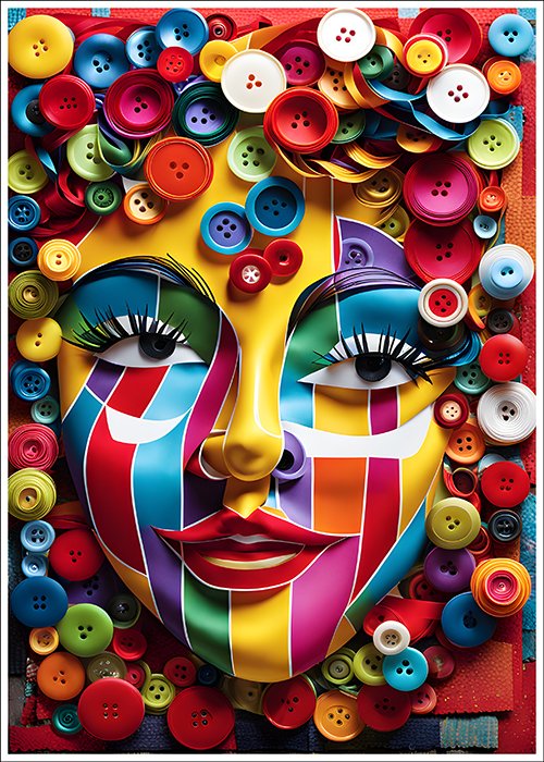 Plakat Pstrokata twarz w guzikach – Abstrakcja, Papier plakatowy, Wykończenie matowe, Bez ramy