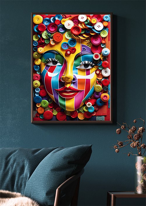 Plakat Pstrokata twarz w guzikach to połączenie estetyki, trwałości i stylu. Motyw oraz staranność wykonania sprawiają, że będzie cieszyć oko przez wiele lat i stanie się wyjątkową dekoracją w Twoim wnętrzu.