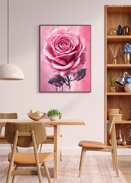 Plakat Różowa róża z listkiem to połączenie estetyki, trwałości i stylu. Motyw oraz staranność wykonania sprawiają, że będzie cieszyć oko przez wiele lat i stanie się wyjątkową dekoracją w Twoim wnętrzu.
